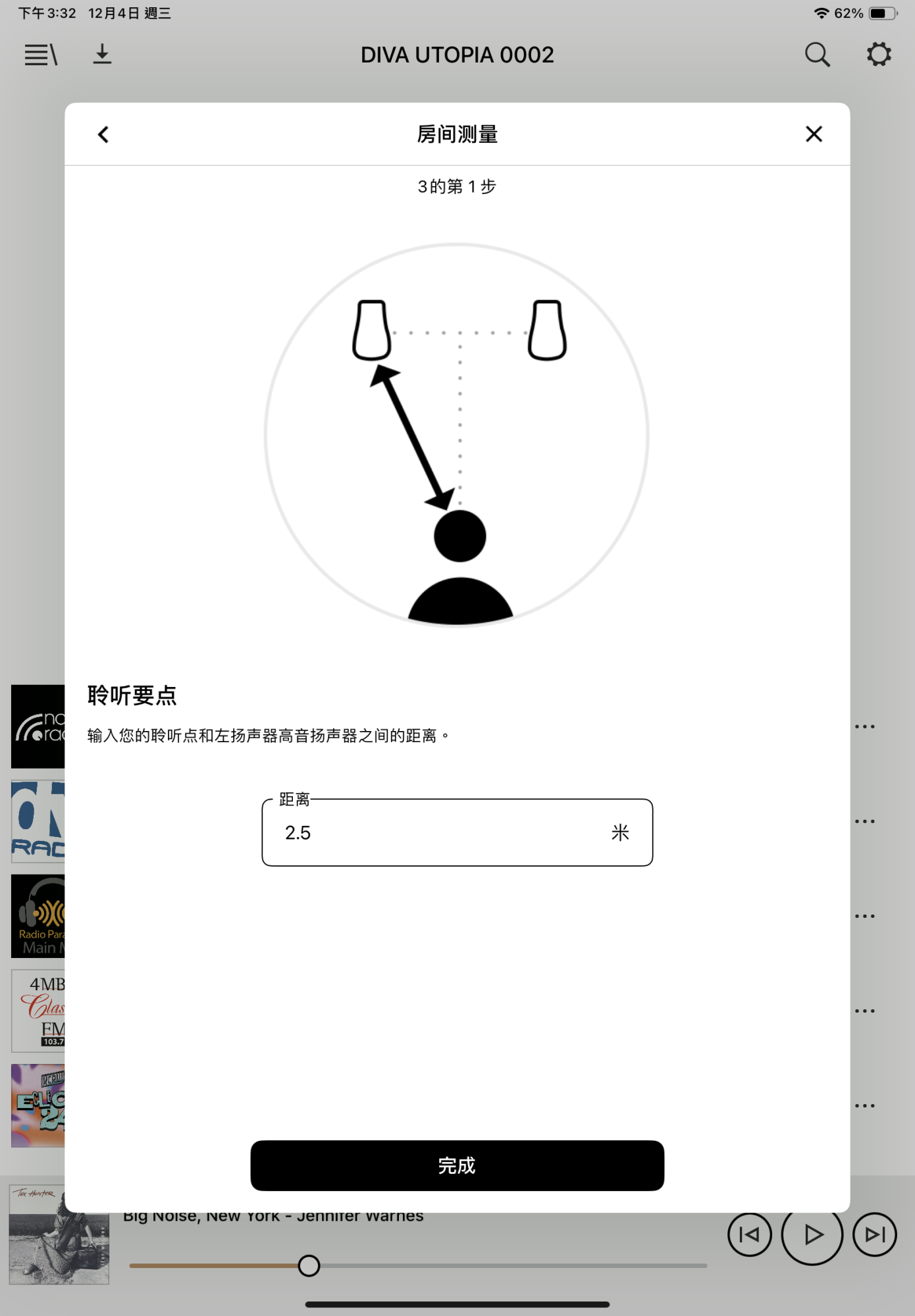 手動設定時,只需輸入高音單體與前牆和側牆之間的距離即可進行校準。對於 iPhone PRO 用戶(iPhone 12 Pro 及以上版本),可以使用智慧型手機相機的「擴增實境」功能標記高音揚聲器相對於所有房間參數的位置,使校準過程更加簡單。