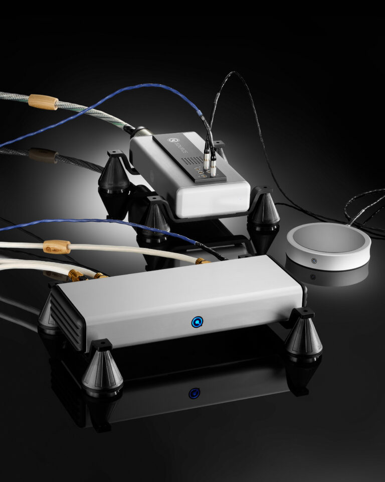 將 QRT 支架與 Nordost Sort Kones 集成,後者可用於同時支援 QNET7 網路交換器和 QSOURCE 線性電源。