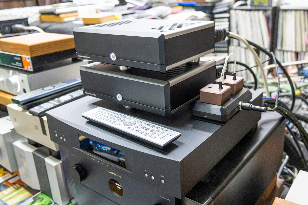 接著試著來看看插在串流機上吧。來插在 Linn「AKURATE DS/K」的類比輸出,聲音發送則是經由數位同軸到 Meridian「ULTRA DAC」。情家みえ「チーク・トゥ・チーク」則是使用 Qobuz 上的 192kHz/24bit 。ULTRA DAC 本身就有著拔群的高音質,在使用 iEARTH 前就有著很好的聲音。「柔和順滑。延展性良好且不拖泥帶水,輪廓柔和同時有著Hi-res音源的清晰細節。人聲柔的樣人的肌膚一般。低音富有彈性。」