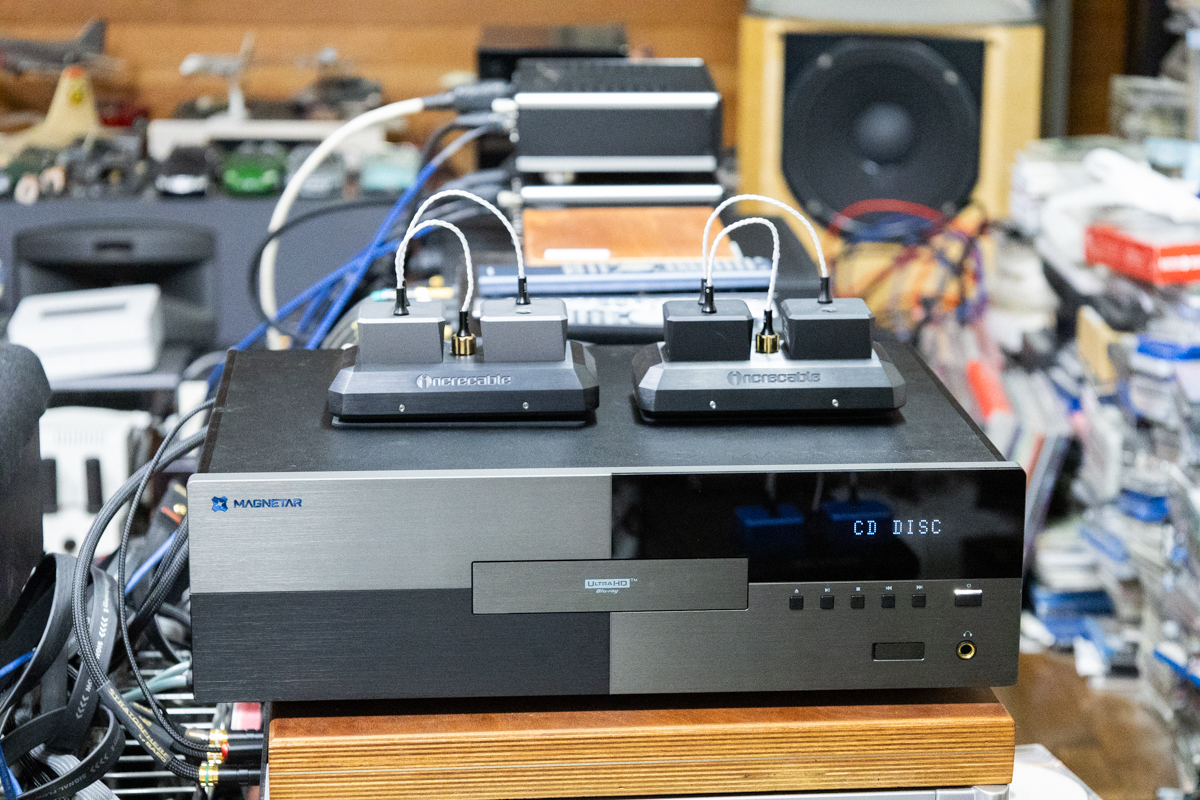 連接 Magnetar UDP900 的影像用 HDMI 端子。聲音輸出走類比的RCA端子。在使用前「聲音結像不夠好,整體較為曖昧不清,速度感也比較慢,低音也比較呆滯」。接著使用Black iEARTH後「聲音的焦距變緊實,人聲的質感變的細緻。聲音結像變好、延伸也變得透明、可以看到更加精細的聲音表情。☆☆☆」