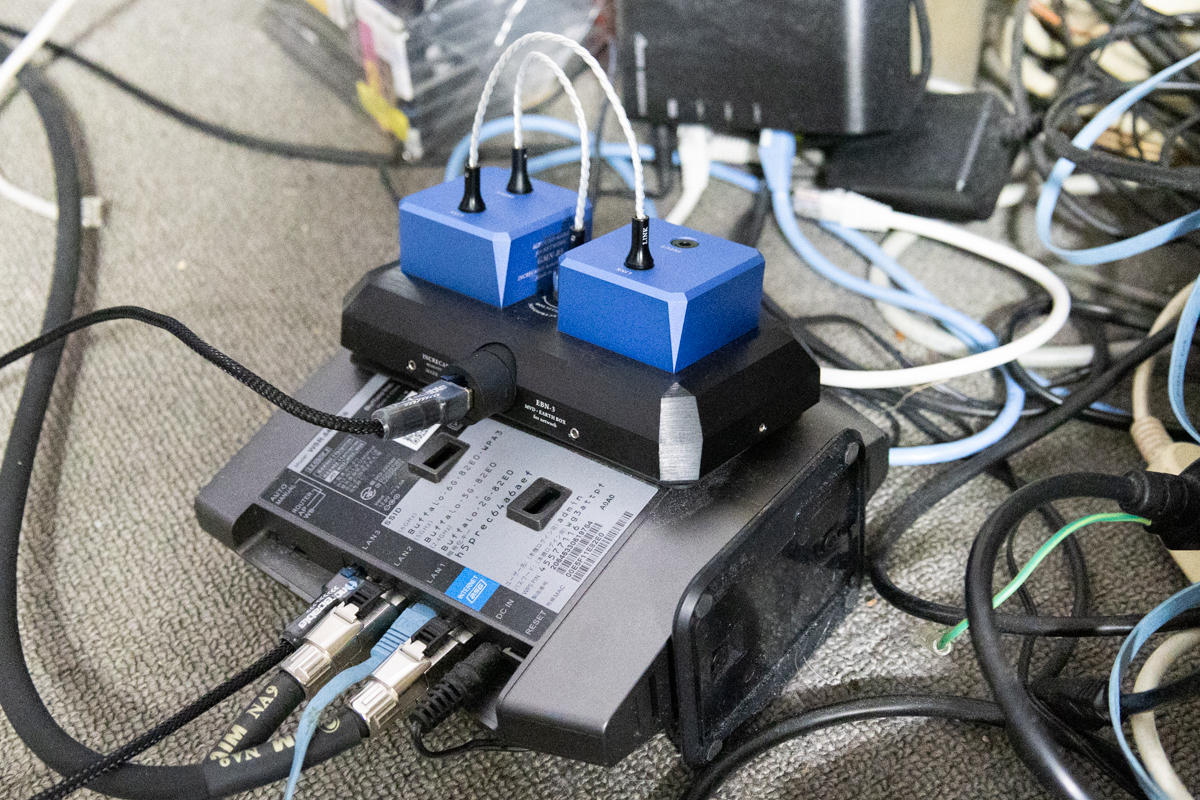 接著來使用對於 Router 等網路躁訊用的「Blue iEARTH」。筆者在AKURATE DS/K插上Gold iEARTH的狀態下,對 Buffalo Wi-Fi6e Router「WSR-5400XE6」插上 Blue iEARTH。