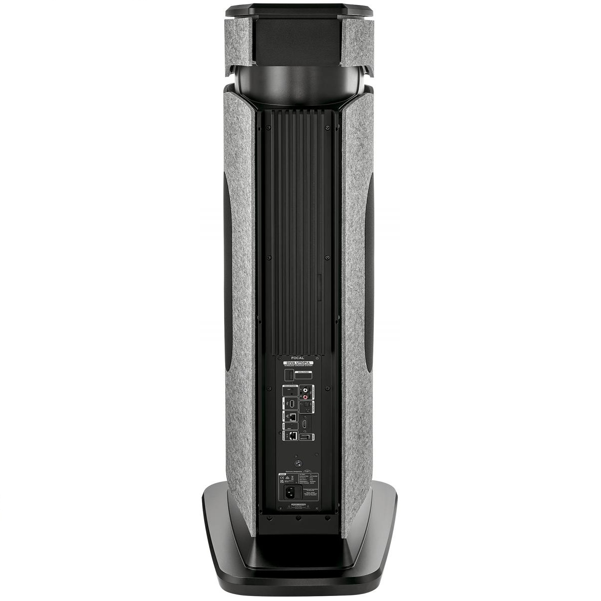 音箱的箱體設計同樣引人注目。這款音箱採用高密度模製聚合物製成,並經過有限元素分析 (FEA) 優化,確保結構剛性。黑色塑膠頂蓋如同“頭部”,支撐著下方的單元,整體造型略微後傾。此外,德國設計師 Becker Brakel 設計的灰色氈面也值得一提。這無疑賦予了 Diva Utopia 獨特的外觀,但我並不確定它是否能獲得所有人的喜愛。如果您覺得它與您的家居裝飾不符,未來 Focal 將會提供其他顏色選擇。