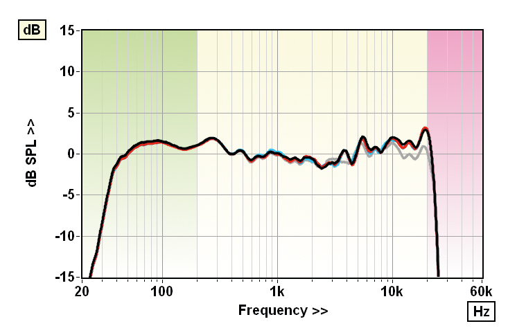 由於這是一款主動式揚聲器,同時具備類比和數位輸入,因此許多標準的實驗室測試——包括阻抗/相位(擴大機負載)和揚聲器靈敏度——都變得多餘。我們可以專注於檢視頻率響應、單元匹配和失真,後者主要為三階失真,但對於揚聲器而言非常低,在其大部分工作範圍內(參考 90dB SPL/1m,100Hz-10kHz)均低於 0.2%。這結果或許在意料之中,這得益於專為兩對 165mm“W”型錐盆低音單元(與 165mm 中音單元和 27mm“M”型鈹高音單元相匹配)設計的 DSP 和定制放大器。